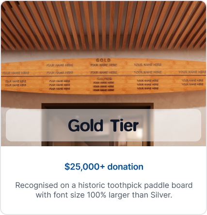 We have created 6 tiers of donors that will be recognised for the life of the new clubhouse, and donations are, of course tax-deductible.